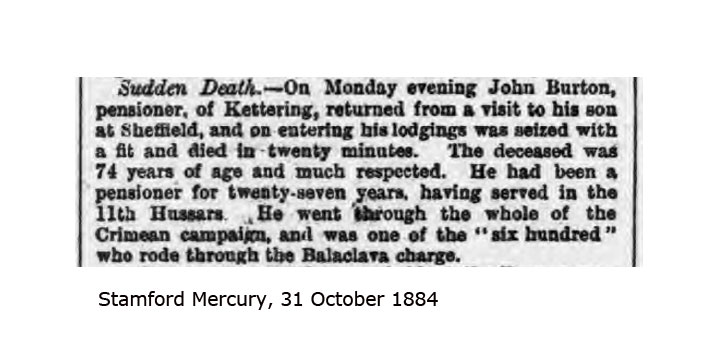 And another private, Pte 1529 William Burton from the 1th Hussars, was born in nearby Thrapston.