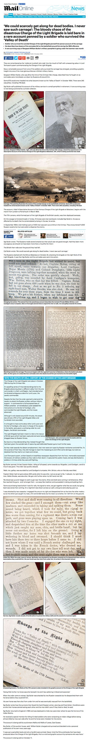 [Source: Daily Mirror: "Horror and carnage of Charge of the Light Brigade revealed in survivor's previously unseen diary" (accessed 5 Oct 2016) ]