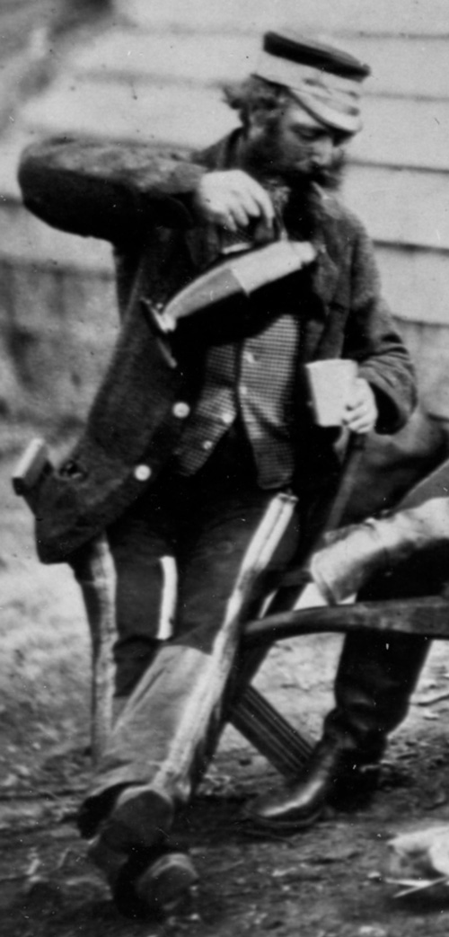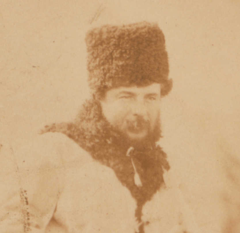 He was photographed by Fenton in 1855 with his unknown soldier servant, both wearing heavy sheepskin coats.