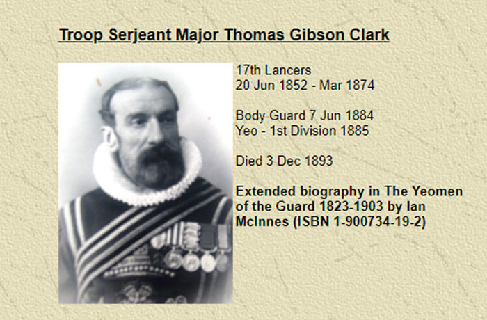 [RM] He appeared with other Crimean War veterans as a "Battle of Balaklava Hero" in the Lord Mayor's Show, 1890. Clark is shown as a Serjeant-Major travelling in the 15th carriage in the procession.