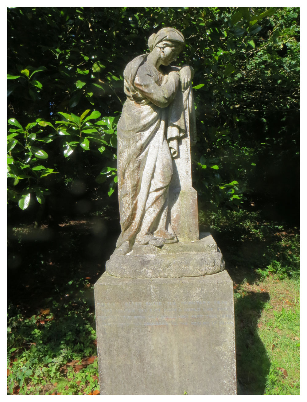 Archibald Clevland (1833-1854), of Tapeley, only son, a cornet in the 17th Lancers, who died aged 21 at the Battle of Inkerman, having just one month before been one of the few officers who survived the Charge of the Light Brigade. He died unmarried and without progeny, and was therefore the last of the Clevland (and Saltren-Willett) family. Several monuments exist to his memory, including an elaborate sculpted and inscribed marble mural monument and a large stained glass window in Westleigh Church, and two monuments in the grounds of Tapeley Park, namely a 50-foot high obelisk (destroyed by lightning in 1933, with only the base remaining [50]), and a statue erected near the lake by his mother, in the form of a mourning lady,[51] with base inscribed as follows: [52]