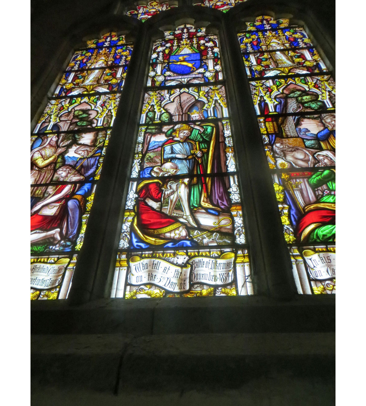 [The main east-end windows above the altar at St John, Instow, are also dedicated to Augustus Clevland.]