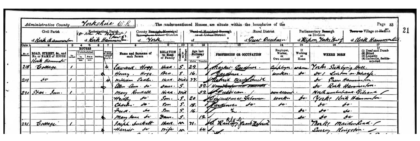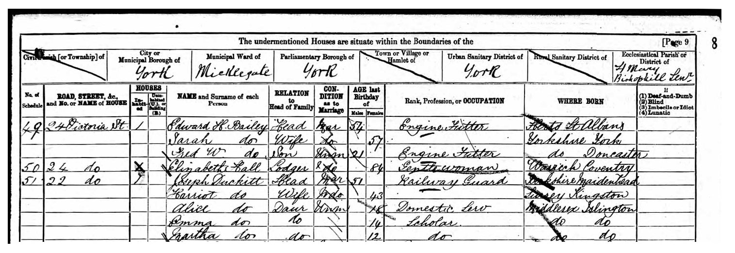 Alice Duckett, Daughter, 18, Domestic Servant, Islington, Middlesex.