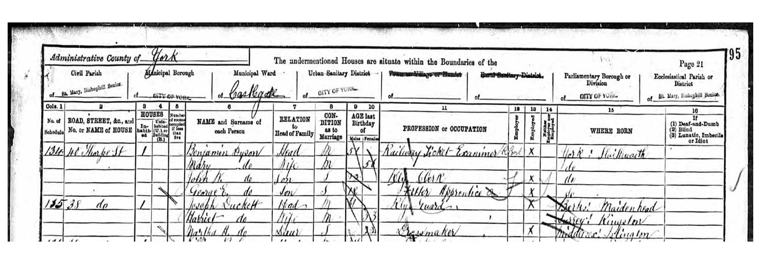 Joseph Duckett, Head, 41, Guard Gt Northern, born Maidenhead, Berkshire