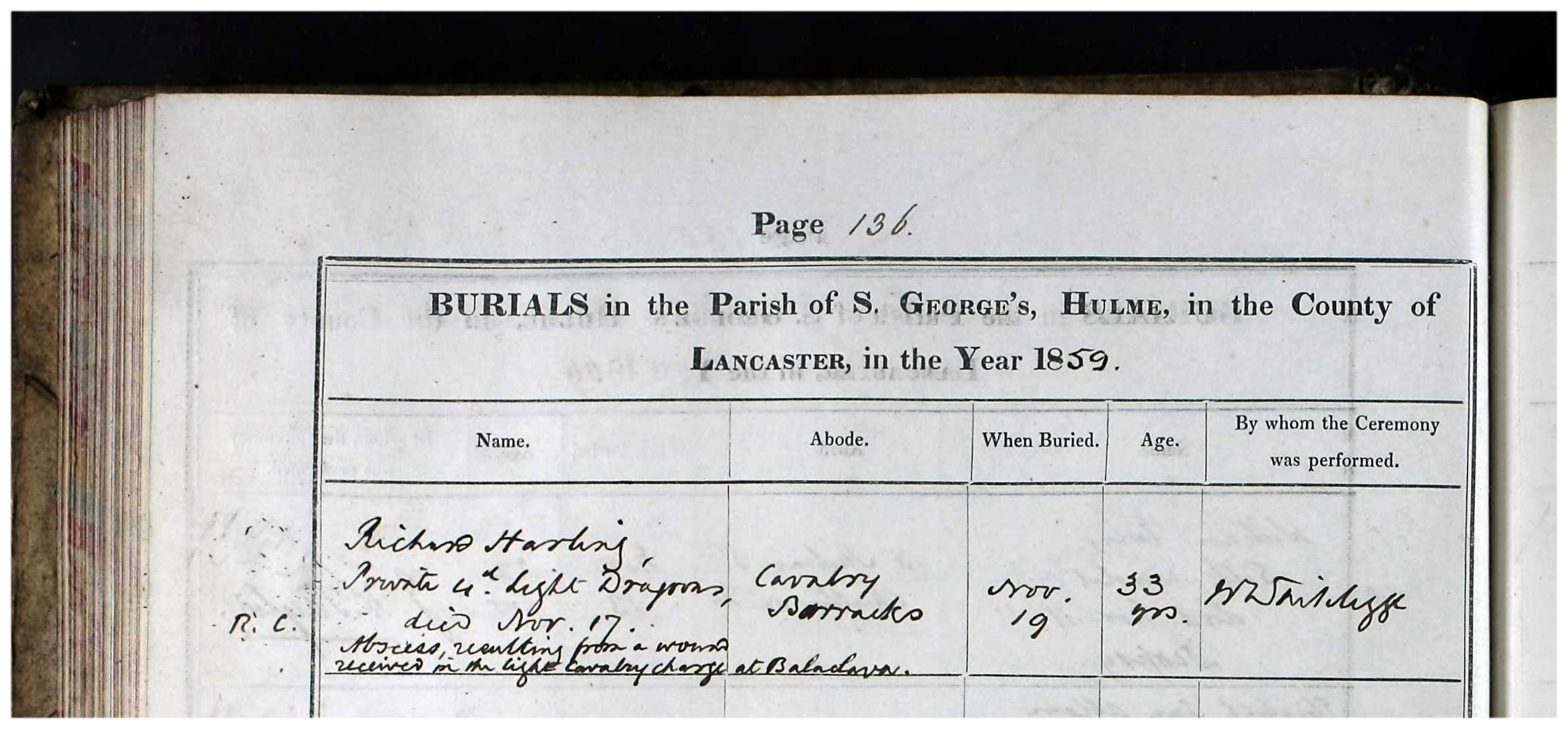 Richard Harling died at the age of 33 at Manchester on the 17th of November 1859.