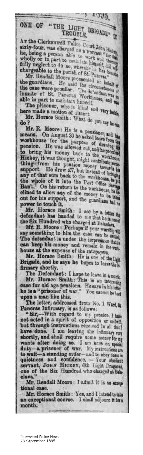 However, only the Lloyd's Weekly Newspaper, Sunday 22 September 1895 ("A Light Brigade Veteran"), added this significant information: