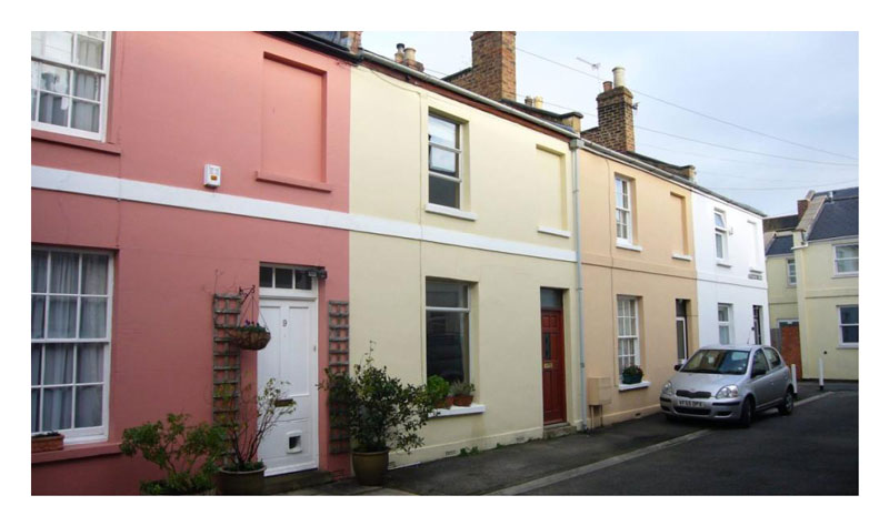 John Hickey's grandson told EJB that his grandparents lived at first at "No. 8 Little Bay's Hill Terrace, Cheltenham." In 2016, there were a number of images online of Little Bayshill Terrace, Cheltenham, of which these are typical.