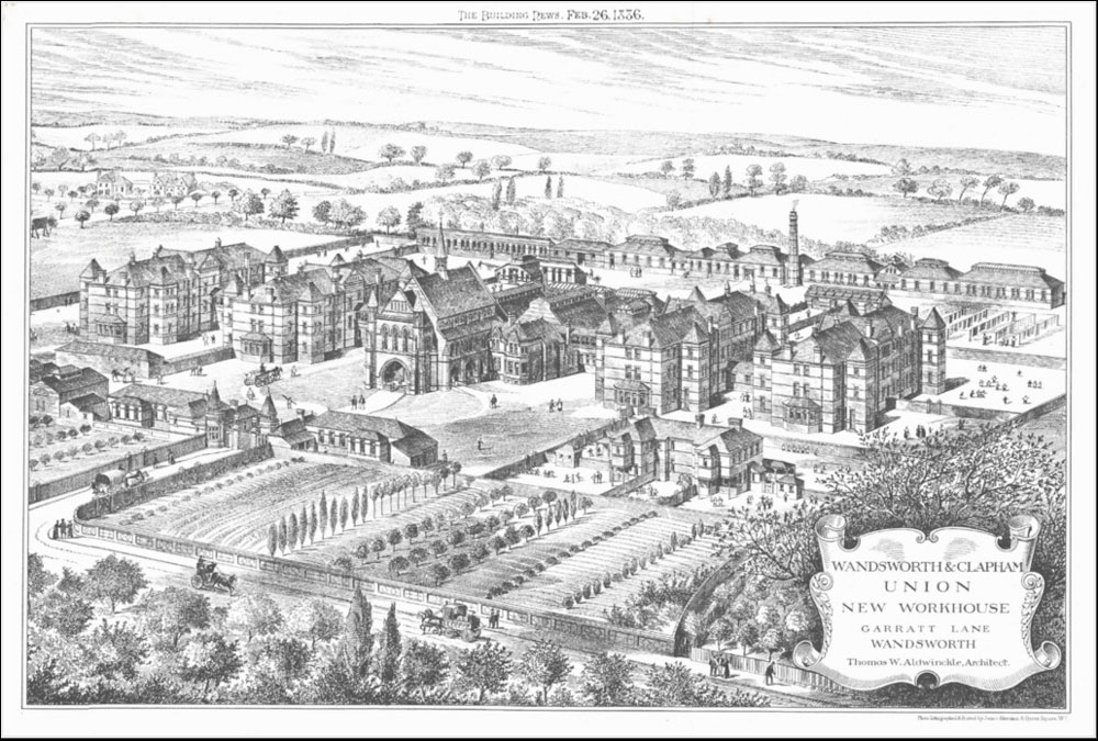 [PB: For more on Wandsworth workhouses, including the one on Garrett Lane, see www.workhouses.org.uk/Wandsworth/, and on the St Pancras workhouse, see www.workhouses.org.uk/StPancras/.]