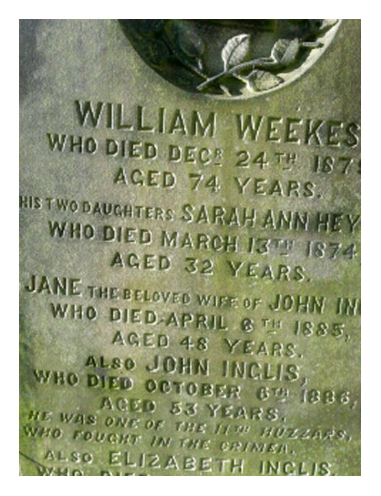 Aged 53 years.He was one of the 11th Hussars, Also Elizabeth Inglis who