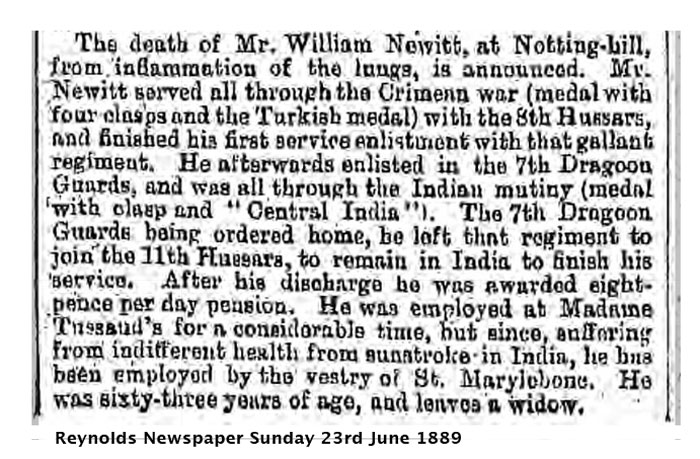 "The last Balaclava man that I knew personally was Private Newitt of the 8th Hussars... and for many years he carried a sandwich board for Madame Tussaud's Exhibition.
