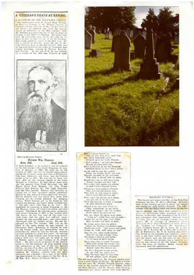 William Pearson, "A Veteran's Death at Kendal", EJB cutting in 4th Hussar file vol 3.