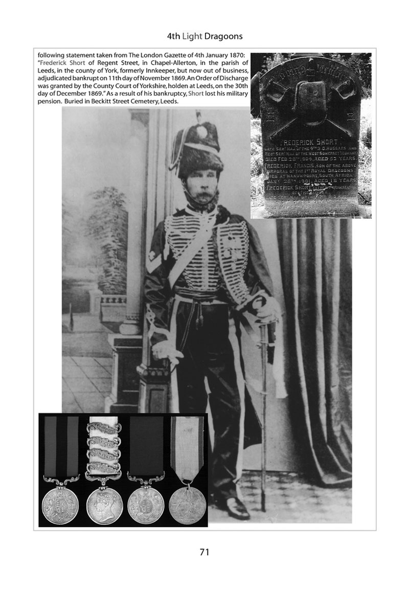 Short's civilian life as an Innkeeper was far from happy, The London Gazette of 4 January 1870 stated: 'Frederick Short of Regent Street, in Chapel-Allerton, in the parish of Leeds, in the county of York, formerly Innkeeper, adjudicated bankrupt on 11th day of November 1869. He died at Kilmeredon [Kilmersdon], Somerset in May 1886, aged 61 years.