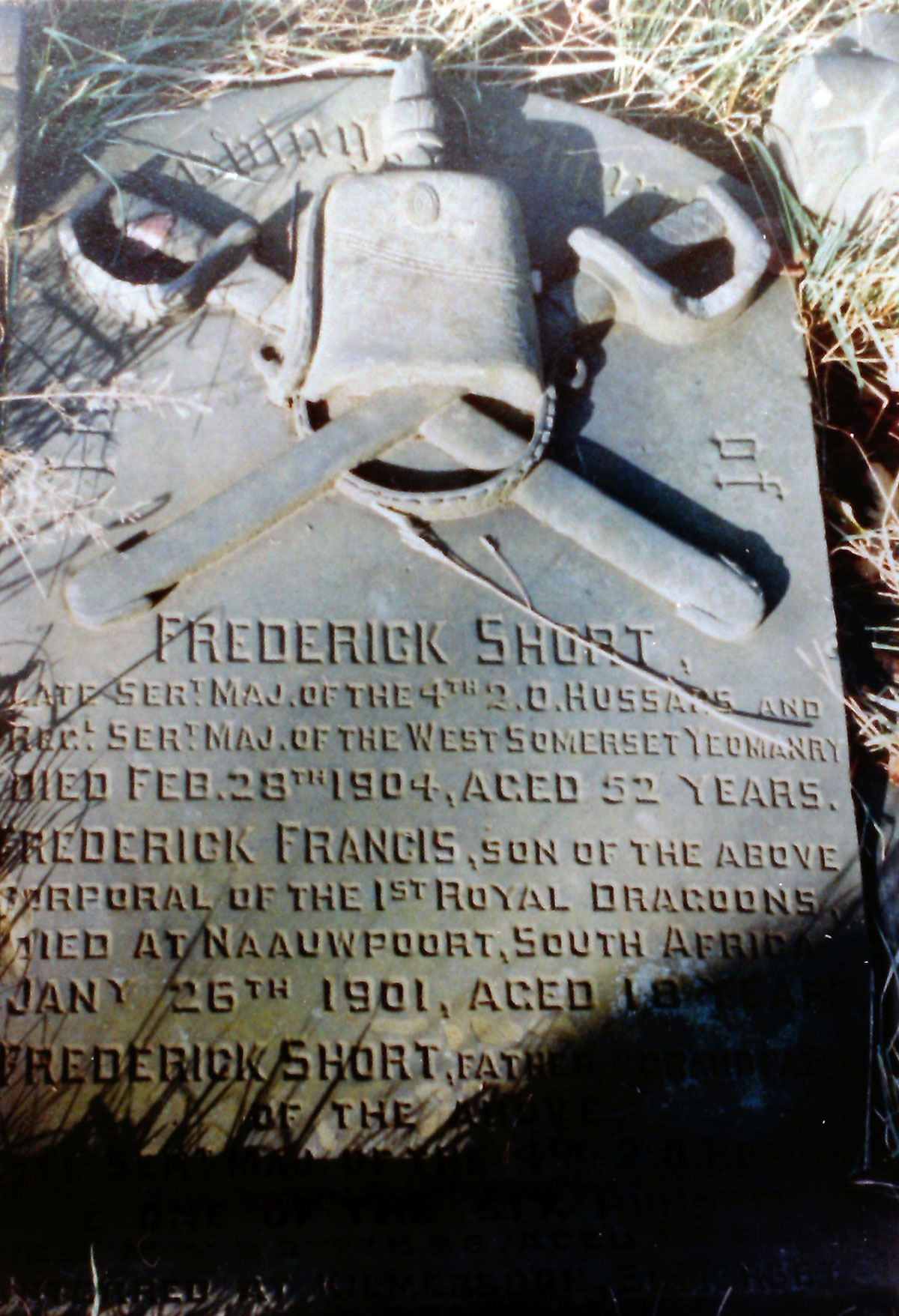 "FREDERICK SHORT, Late Sert.Maj. of the 4th Q.O [Queen's Own] Hussars and Regt Sert.Maj.of the West Somerset Yeomanry. Died Feb. 28th 1904, aged 52 years.
