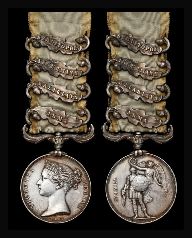 Entitled to the Crimean medal with clasps for Alma, Balaclava, Inkerman, Sebastopol, and the Turkish medal.