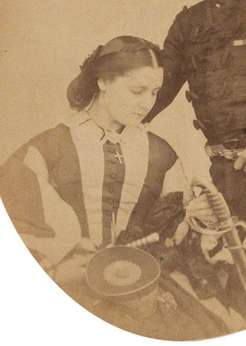 [PB: Add notes and references. Enlargements? Integrate above. There is very little information about this and other pictures in a small NPG collection - I think Trevelyan must be in at least one. The portrait is very interesting indeed, and worth thinking about. Is it a wedding portrait? Notice Maria's demure downturned look at the handle of HJW's sabre, which she holds lovingly. His hat and other military items appear to lie on her lap. Look more closely. She is wearing a crucifix. Was she Roman Catholic or did Anglican women also wear them at this time?]