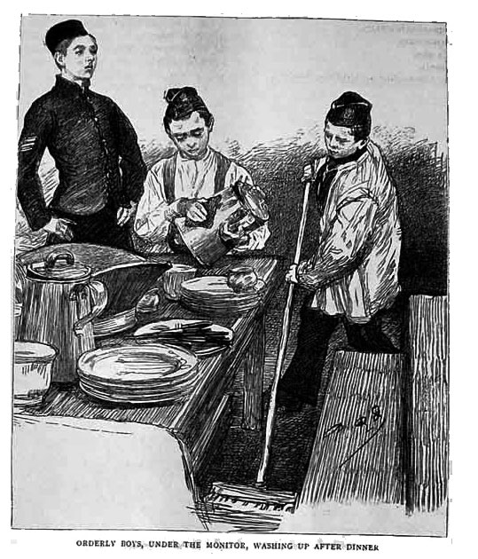 It is unlikely that life for the boys was ever as idyllic as this scene suggests. See, for example, descriptions of duties and punishments at http://www.achart.ca/duke-of-york.htm.
