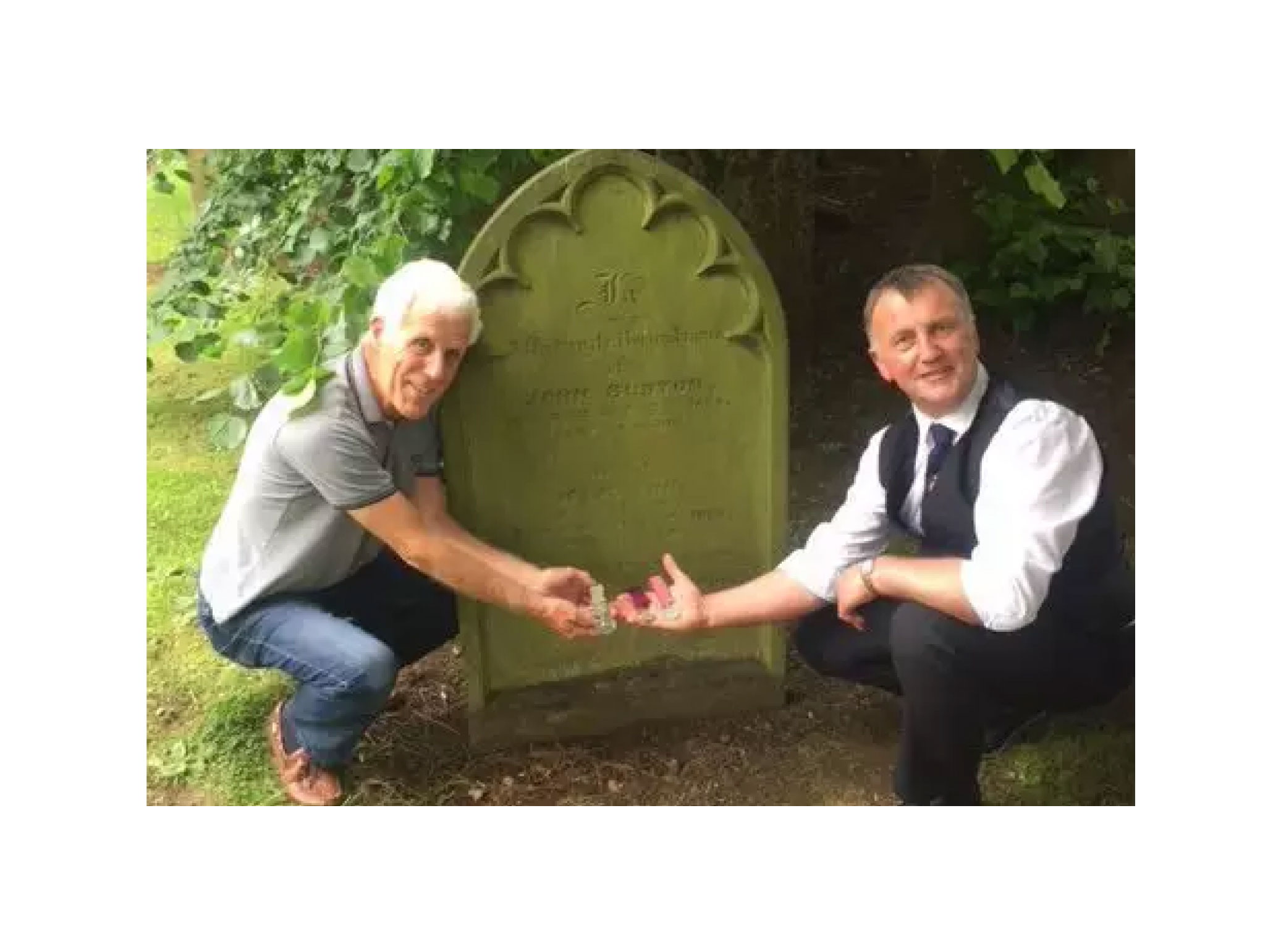 Jason Robinson (right) with his mum's third cousin removed Richard Burton, who he met for the first time, at their ancestor's grave.