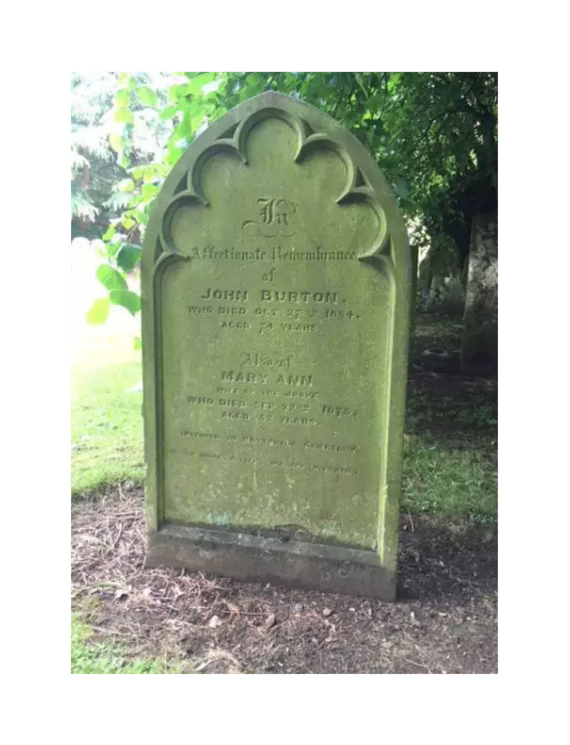 "In Affectionate Remembrance of John Burton who died Oct 27th 1884 aged 74 years
