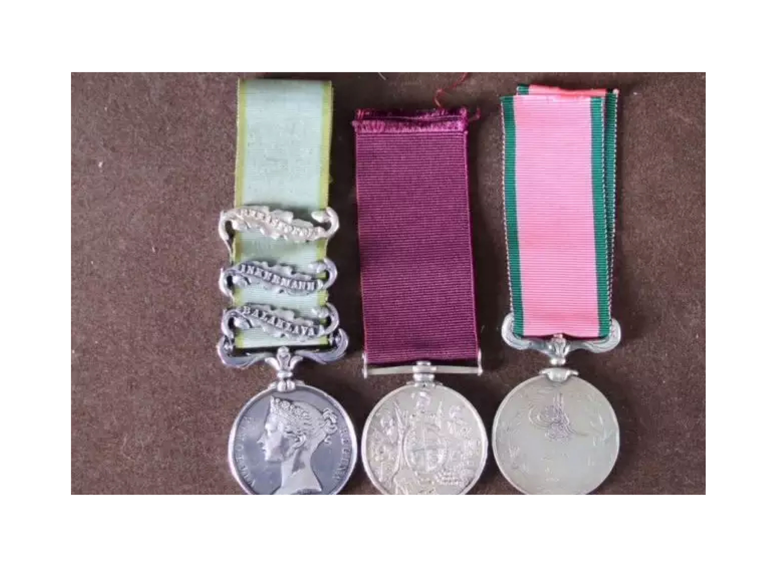 Entitled to the Crimean medal with clasps for Balaclava, Inkerman, Sebastopol and the Turkish medal.