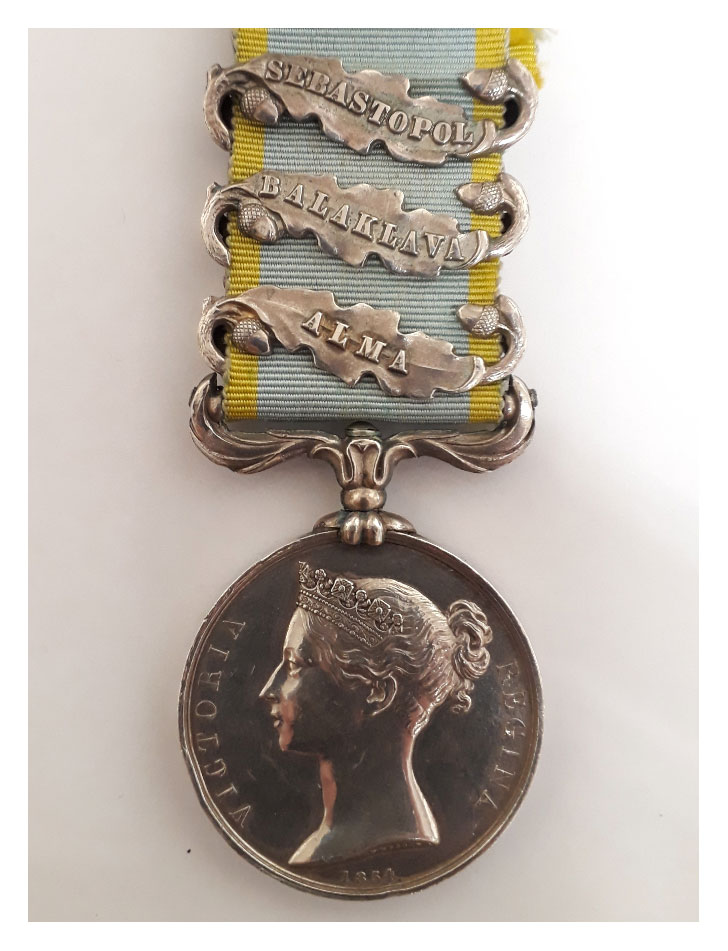 Entitled to the Crimean medal with clasps for Alma, Balaclava and Sebastopol.