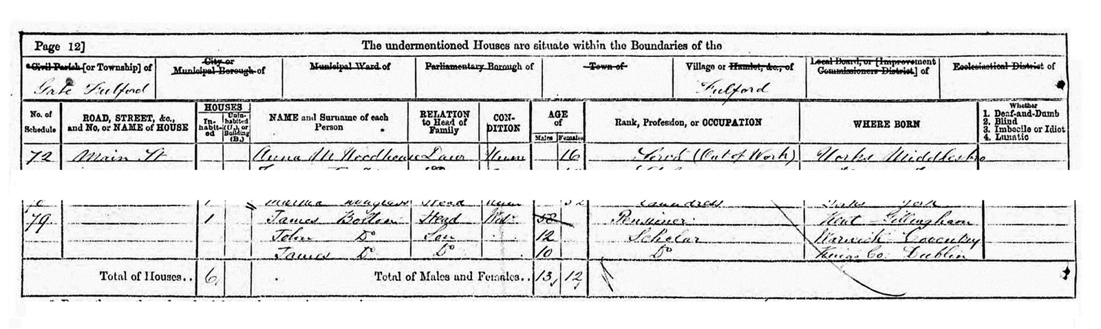 Death of a Balaclava Veteran. "Mr. James Bolton, who, whilst with the 4th Light Light Dragoons, took part in the celebrated Charge of the Light Brigade at Balaclava has just died at Fulford in his 76th year [sic]."