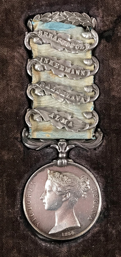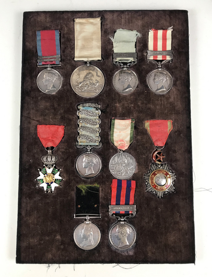 Entitled to the Crimean medal with clasps for Alma, Balaclava, Inkerman and Sebastopol, the Turkish Medal, Order of the Medjidie, 5th Class, and Knight of the Legion of Honour.