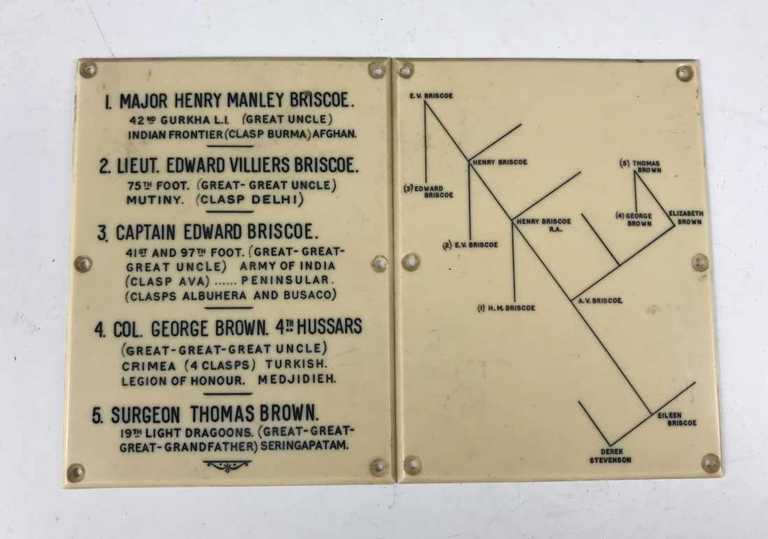 An extensive 19th Century family campaign medal group including a those of confirmed Charge of the Light Brigade charger, comprising Seringapatam Medal in silver (48mm), that of Surgeon Thomas Brown, 19th Light Dragoons, a pair comprising Military General Service Medal with Albuhera and Busaco clasps, impressed to Edwd Briscoe, Capt, 97th Foot, Army of India Medal with Ava clasp impressed to Captn E Briscoe, 41st Foot, Brig Maj, a single Indian Mutiny Medal impressed to Lieut E V Briscoe, 75 Ft, a group of four comprising Crimea Medal with Sebastopol, Inkermann, Balaklava and Alma clasps, to Brevet Major G J Brown, 4th Light Dragoons, Turkish Crimea Medal, Ottoman Order of the Medjidie, and French Legion d'Honneur, and a pair comprising Afghanistan Medal to Lt H M Briscoe, 4th Beng N I and India General Service Medal with Burma 1885-7 clasp to Captain H M Briscoe, 42nd Bl Infy.