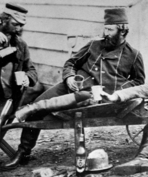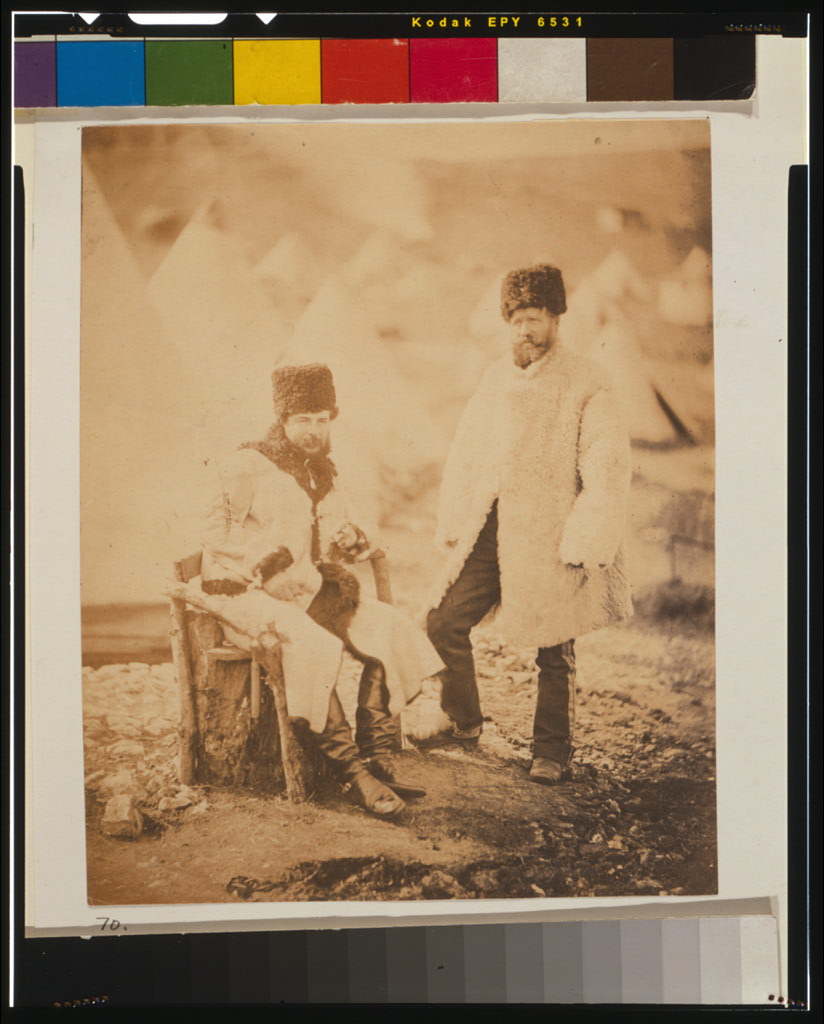 He was photographed by Fenton in 1855 with his unknown soldier servant, both wearing heavy sheepskin coats.