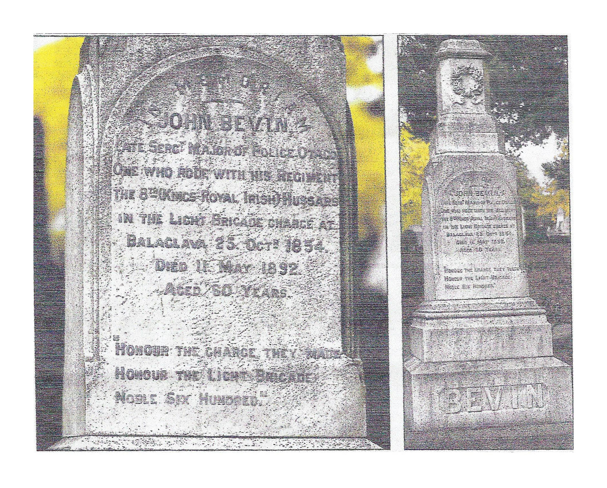 Bevin was with the 8th Kings Royal Irish Hussars at the battle of Balaclava on October 25, 1854, where he was part of the doomed Charge of the Light Brigade. He was wounded and taken prisoner by the Russians.
