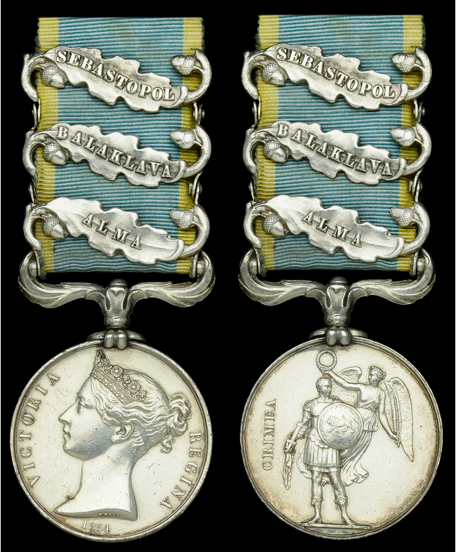 Entitled to the Crimean medal with clasps for Alma, Balaclava and Sebastopol.