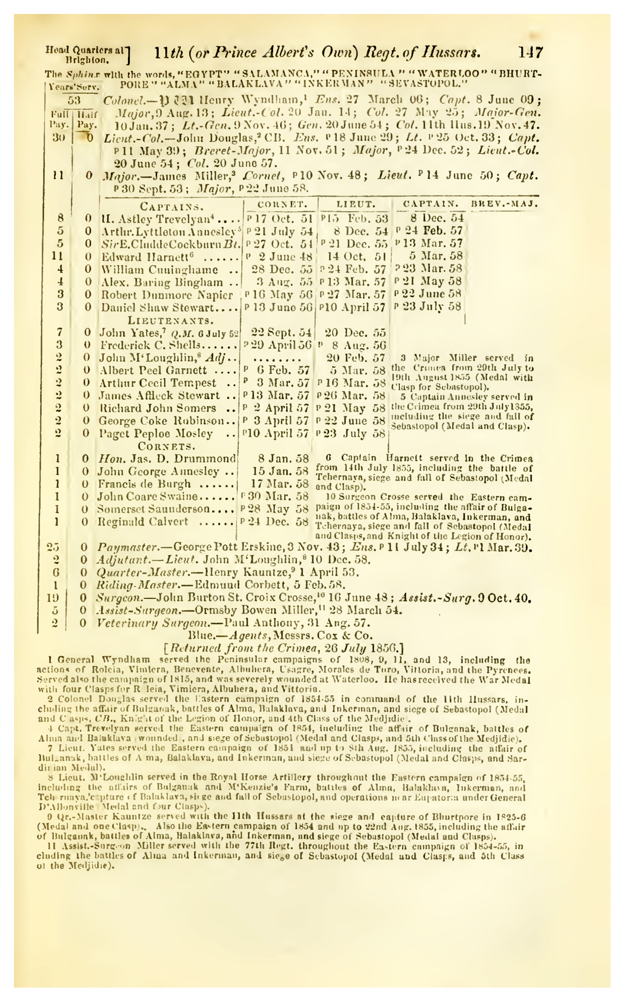 Brevet-Major, 11th Hussars: 12th of December 1854.