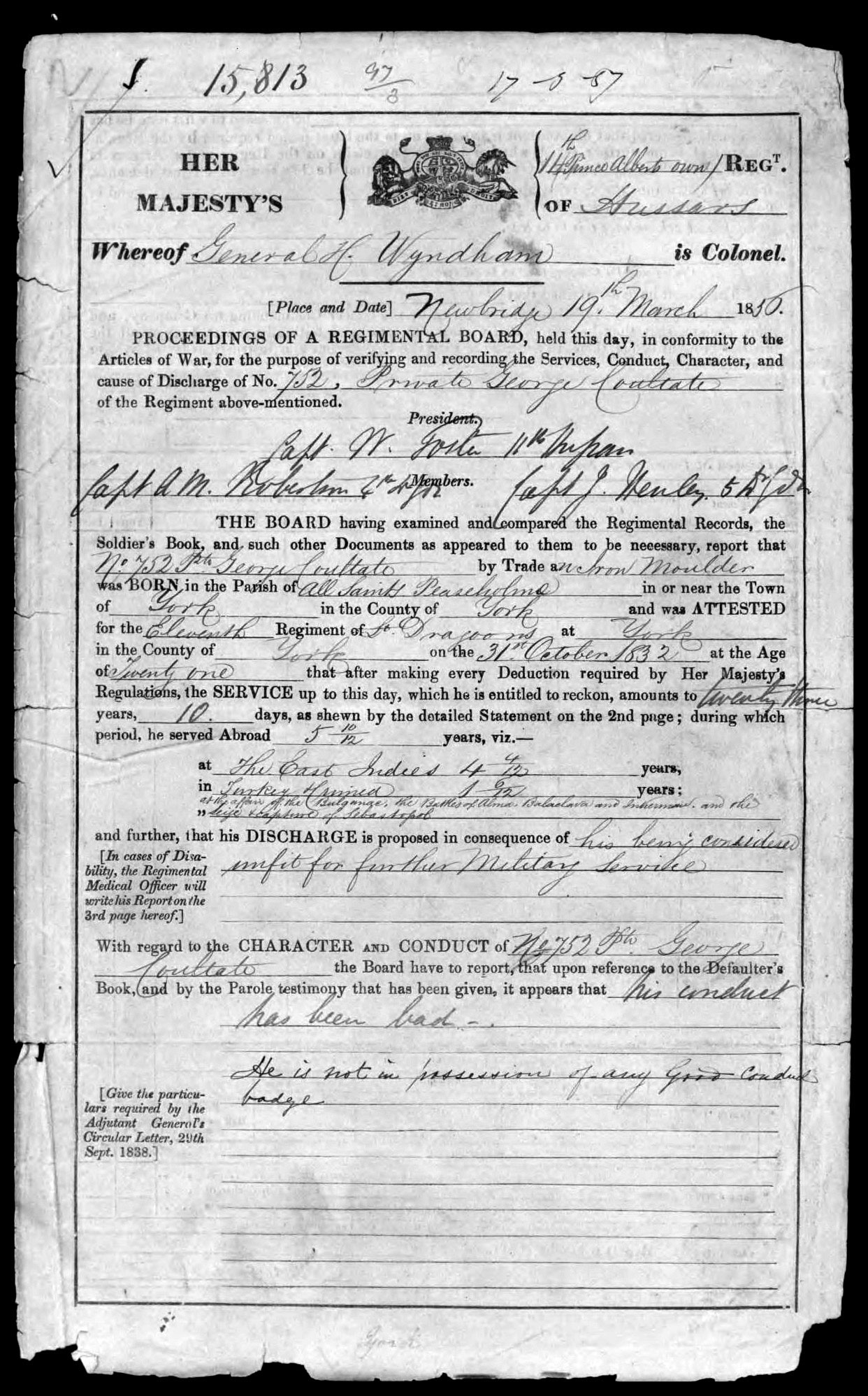 George Coultate is my great-great-great-grandfather. I have obtained a copy of his military discharge certificate, which I have attached...