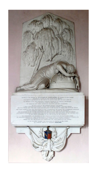 Sacred to the memory of AUGUSTUS CLEVLAND of Tapley in this parish, Lieutenant Colonel of the North Devon Militia and Deputy Lieutenant of the county of Devon. Died July 5th 1849 aged 68.