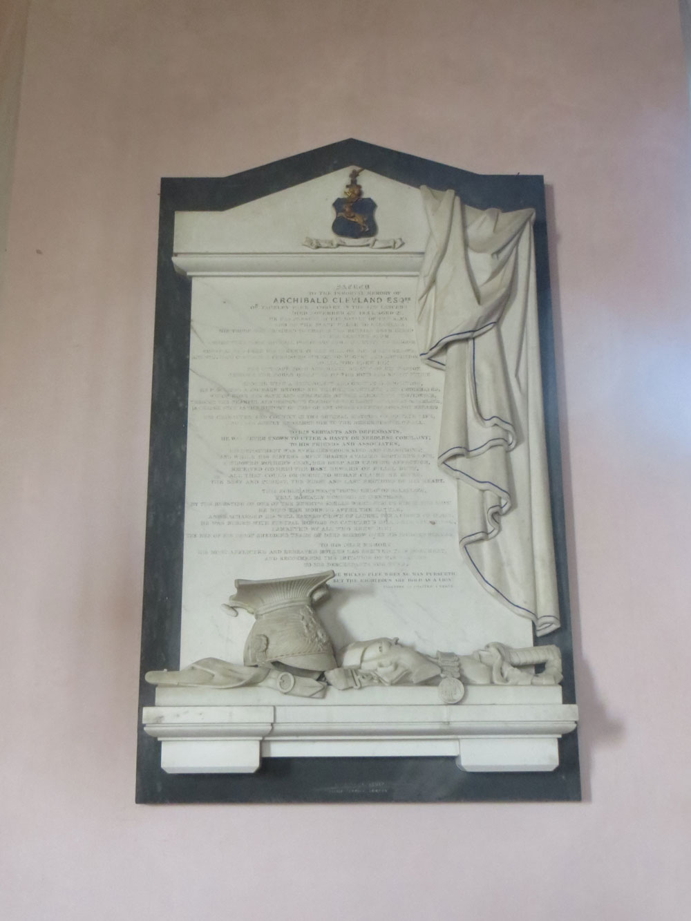 There is a tablet to the memory of his father, Augustus Clevland (died 1849, aged 68), that refers to Archibald as his heir. (In fact, it was the two unnamed daughters who inherited.)