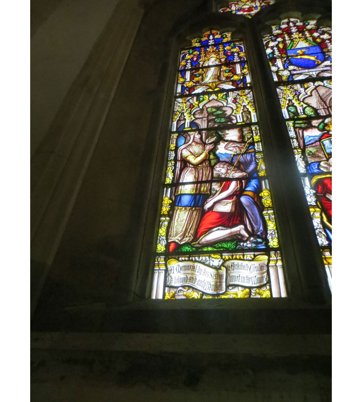 [The main east-end windows above the altar at St John, Instow, are also dedicated to Augustus Clevland.]