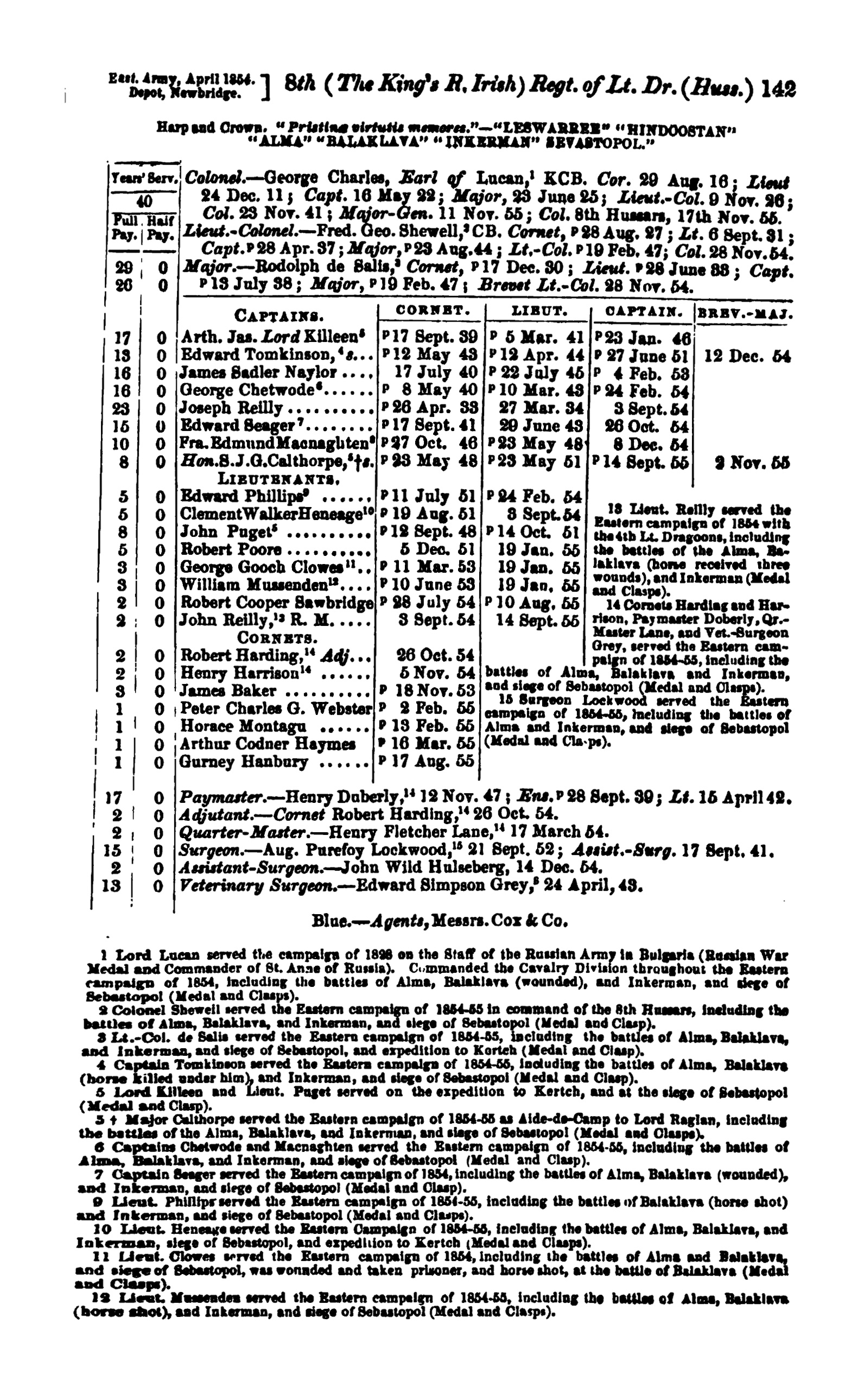 Lieutenant, 8th Hussars: 19th of November 1855.