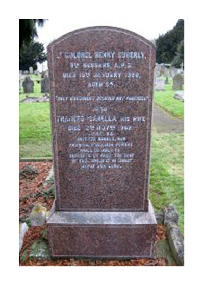 The grave of Frances and Henry Duberly is situated to the right of, and close to, the arched doorway of the church entrance [right of photograph].