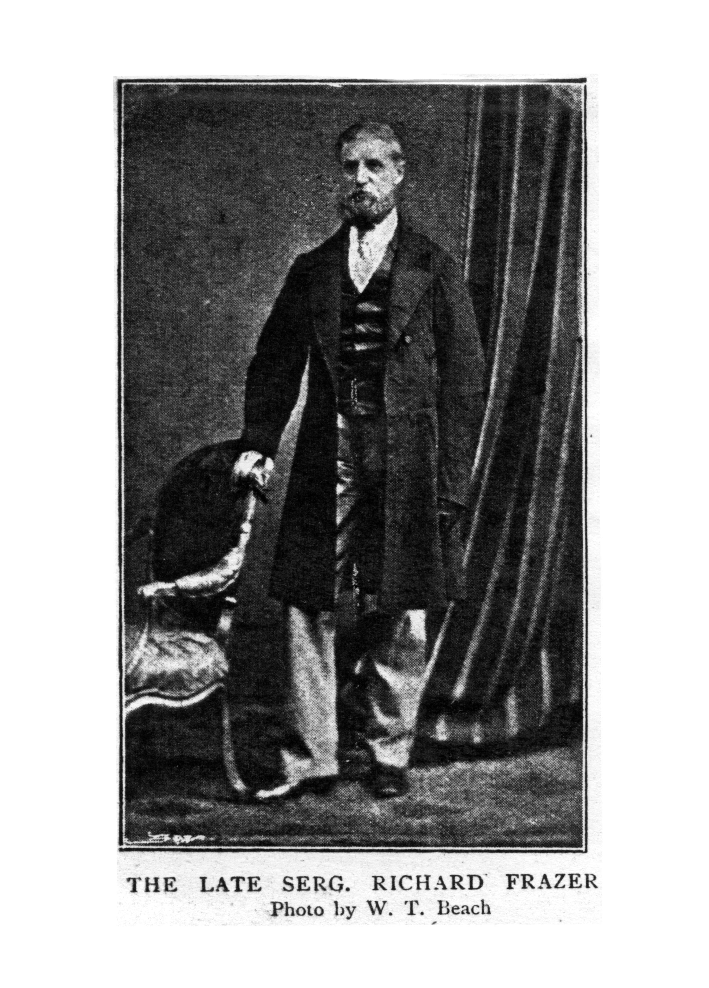 The hero is Mr. R. Frazer, formerly a sergeant of the 13th Light Dragoons, (now Hussars) who has reached the ripe old age of 77 years. He has the reputation of being an intelligent, unassuming man, but although his certificates of character and conduct from his regiment have been laid before the authorities at the War Office, he has received, up to the present, no recognition from the Government of the land he fought so nobly for in the Crimean campaign. It appears that he only served in the army for fourteen years, which according to the regulations of the period, would debar him from any claim to a regular pension.