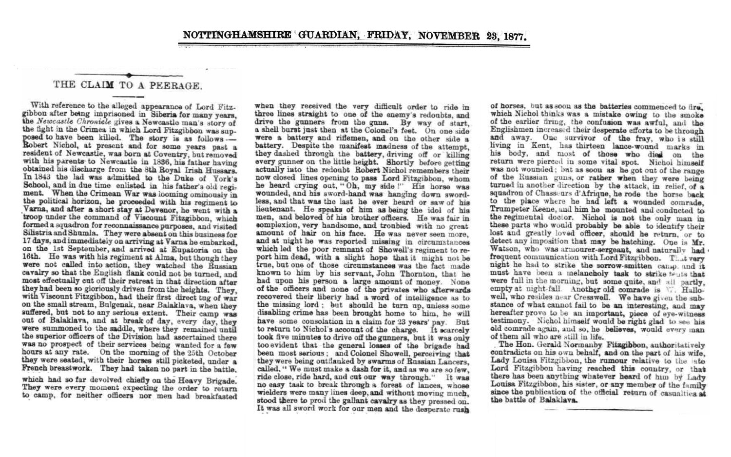 Freeman's Journal and Daily Commercial Advertiser (Dublin, Ireland), Friday, November 23, 1877;