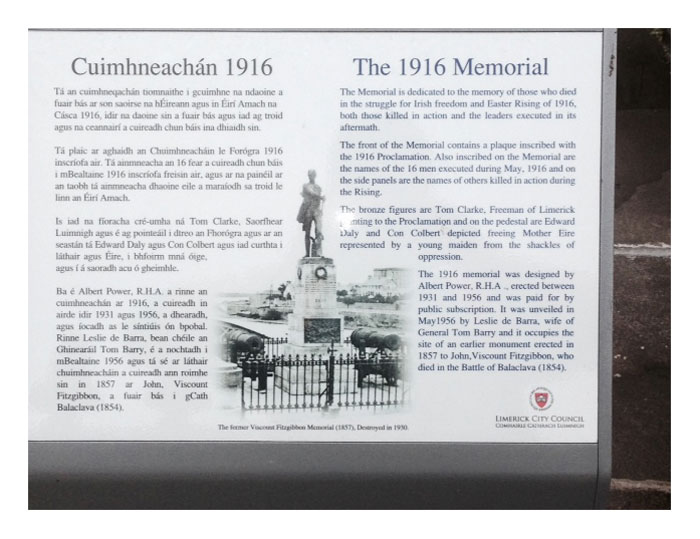 — "The 1916 Memorial: Photonotes of Old Limerick", Seamus O Cinneide, Limerick Leader, 9 April 1983.