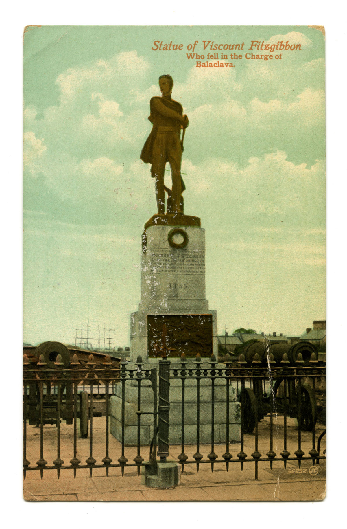 A bronze statue commemorating the heroism of Viscount Fitzgibbon who fell in the charge of the Light Brigade at Balaclava, was blown to pieces Limerick yesterday.