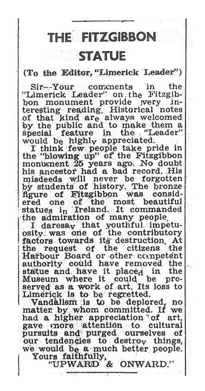 Letter re the Fitzgibbon statue, Limerick Leader, 10th November 1956, p.7.