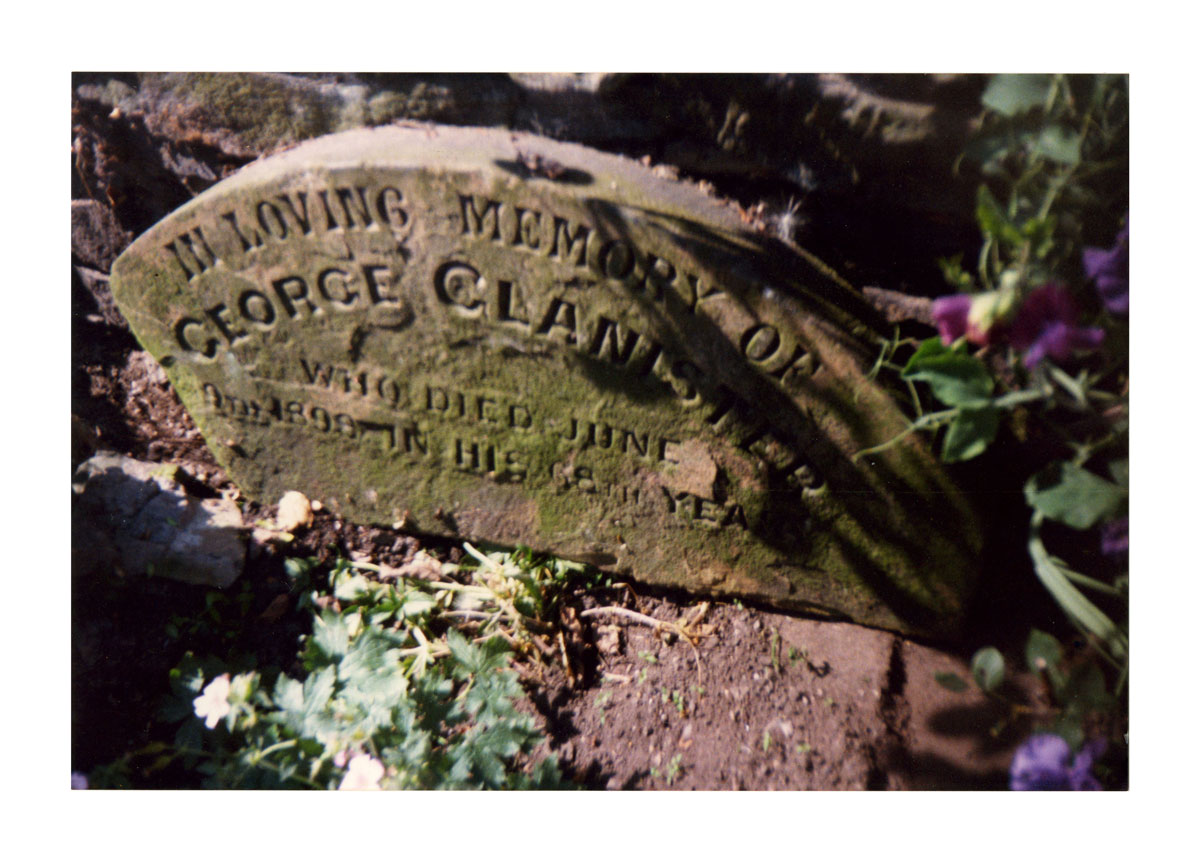 Hearing of the imminent clearing and landscaping of part of St. George's churchyard at Mossley, a member of Mr. Glanister's family managed to "rescue" the upper part of the gravestone erected to George Glanister and had it built into the garden wall of his home in Broadcar Lane, Mossley.