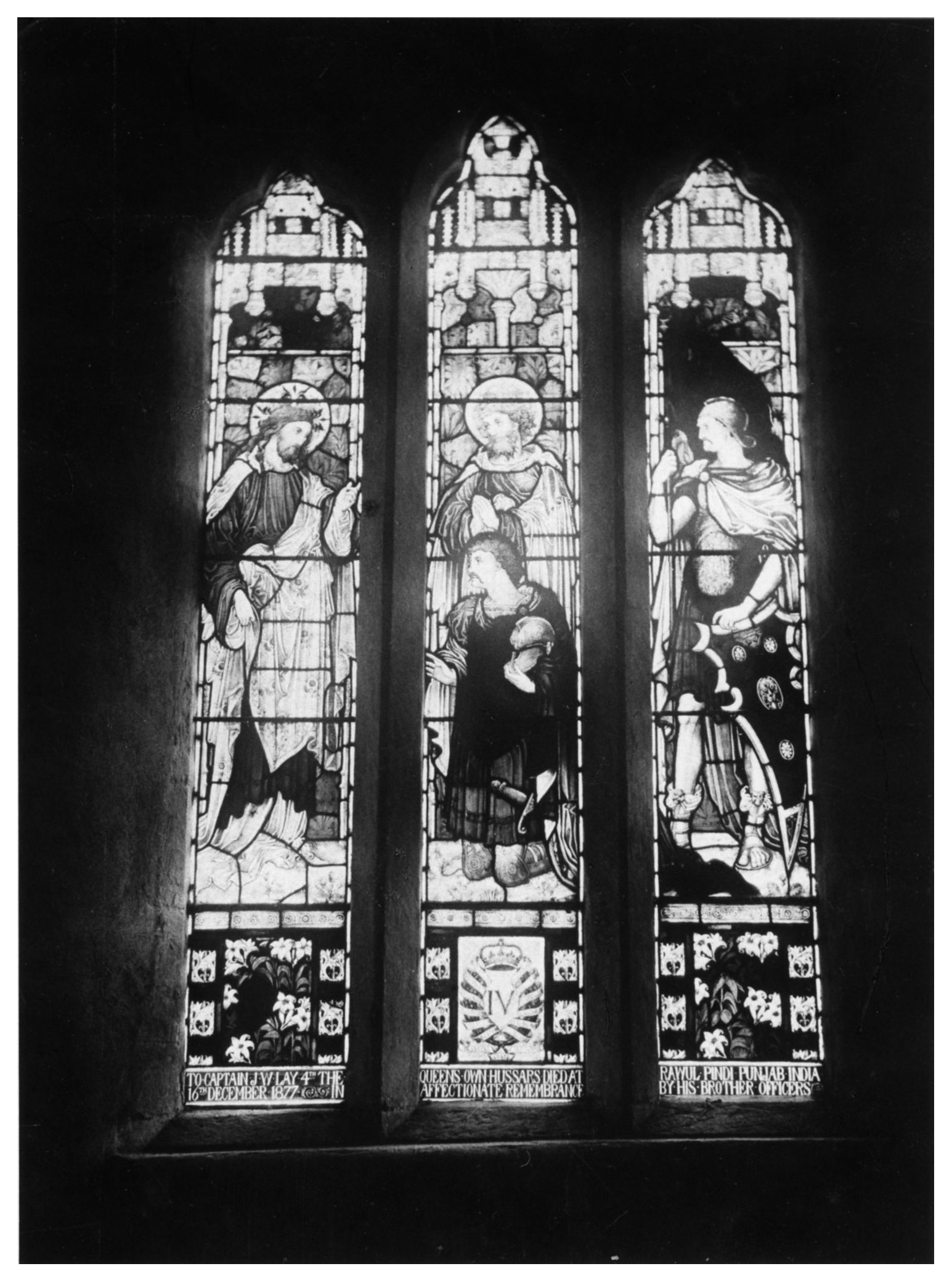 "To Captain J.W. Lay, 4th The Queen's Own Hussars. Died at Rawal Pindi, Punjab, India, 16th December 1877. In affectionate remembrance by his brother officers."
