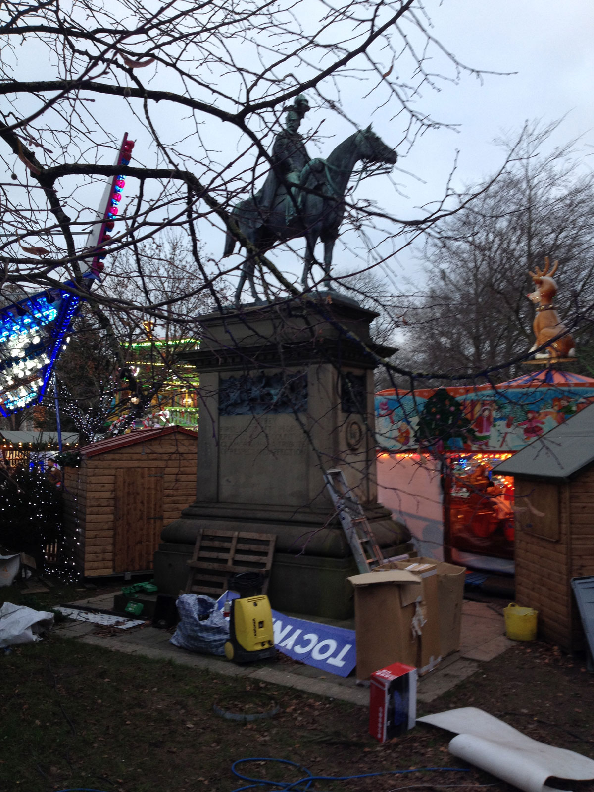 In 1909 a life-sized equestrian statue of Godfrey, First Viscount Tredegar, was erected in Cathays Park, Cardiff. The sculptor was W. Goscombe John.