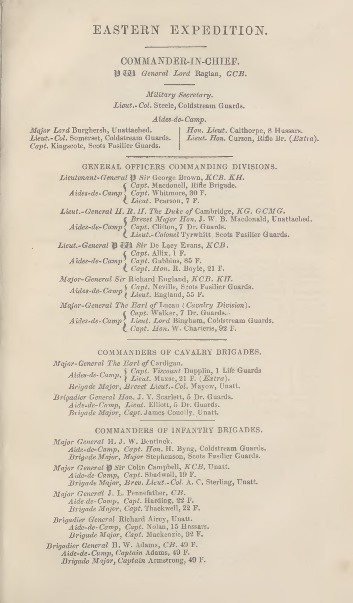 Asst. Q.M.G. to the Cavalry Division in the Crimea from the 20th of December 1854.