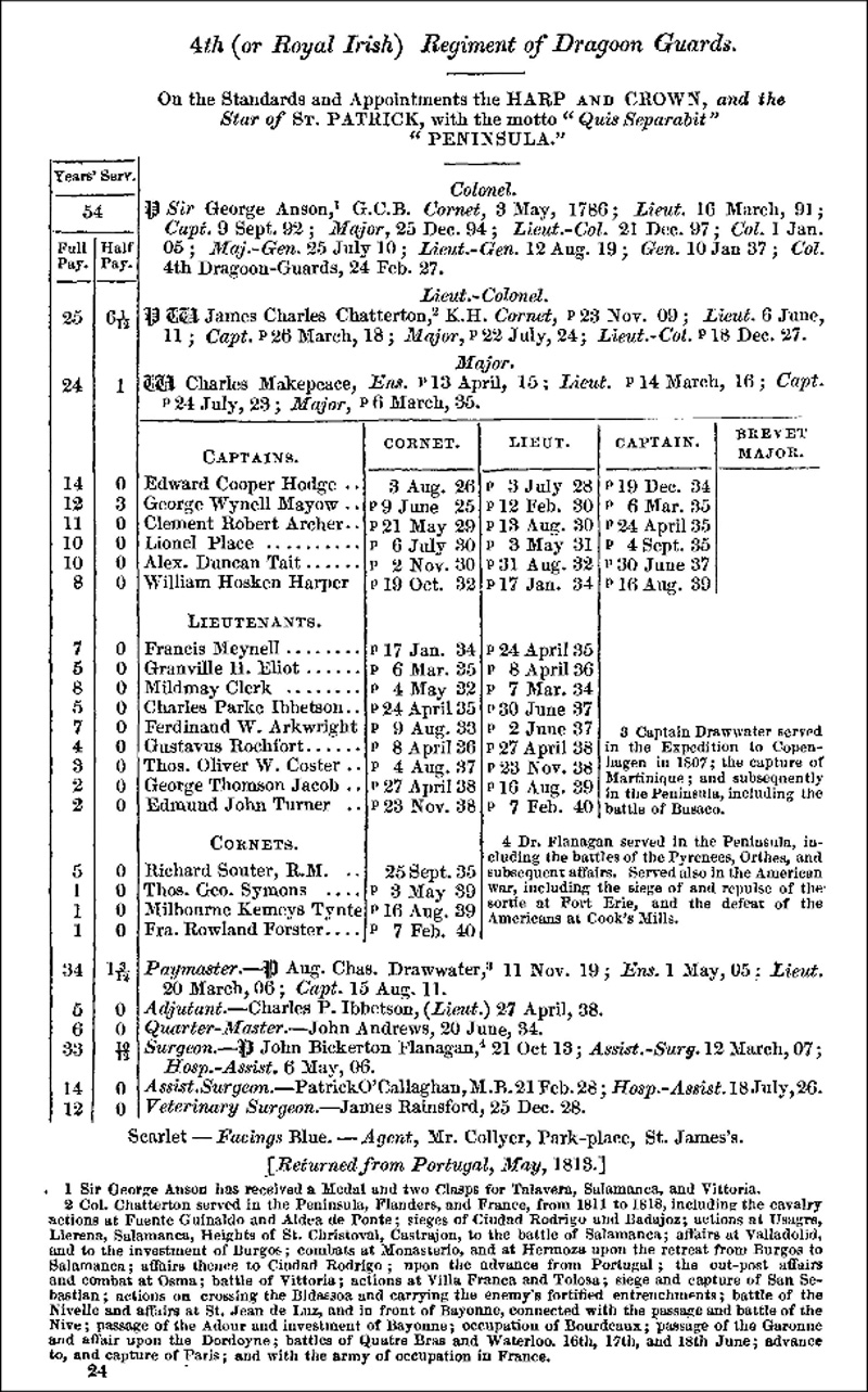 Cornet in the 4th Dragoon Guards: 9th of June 1825.