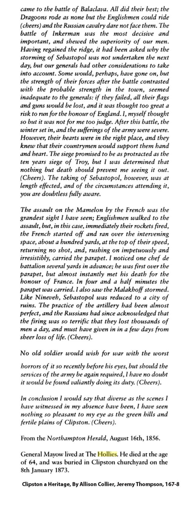 George Mayow survived the battle, returned to Clipston a hero, and died on New Year's Day 1873.