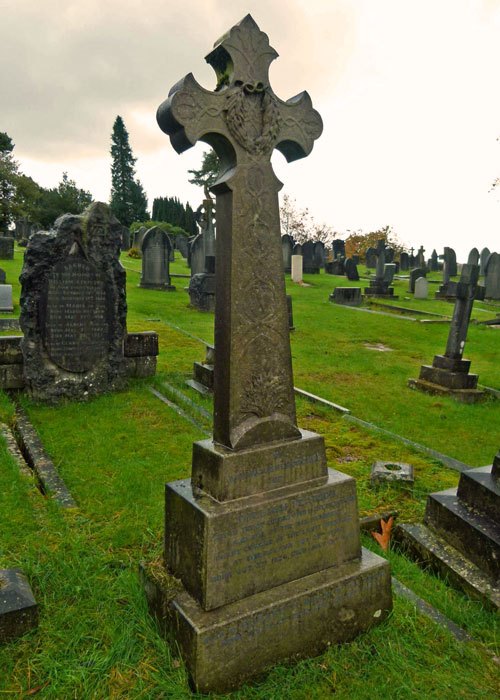Top right: William Pearson's tombstone in Kendal Cemetery — the large cross on the right in the photograph. (Photo probably EJB, pre-2002).