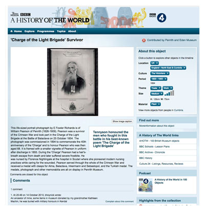 The photograph is of Trooper William Pearson who survived the Charge of the Light Brigade during the Crimean War.